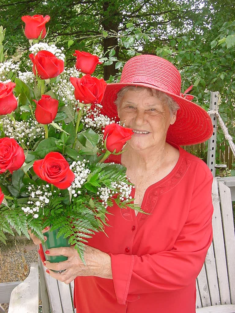 Friday morning my mother in law, Audine Twilla Artz, 90 1/2 years old, passed away peacefully and is now at home in heaven. My husband encouraged me to participate in the Artwalk in St. Charles anyway. Audine had left us in spirit some time ago and now was released to new life, in heaven with the Lord, her husband and loved ones gone before. So, over the weekend I painted this larger than life Iris in her memory. Here is the purple iris and Audine blossoming in red.